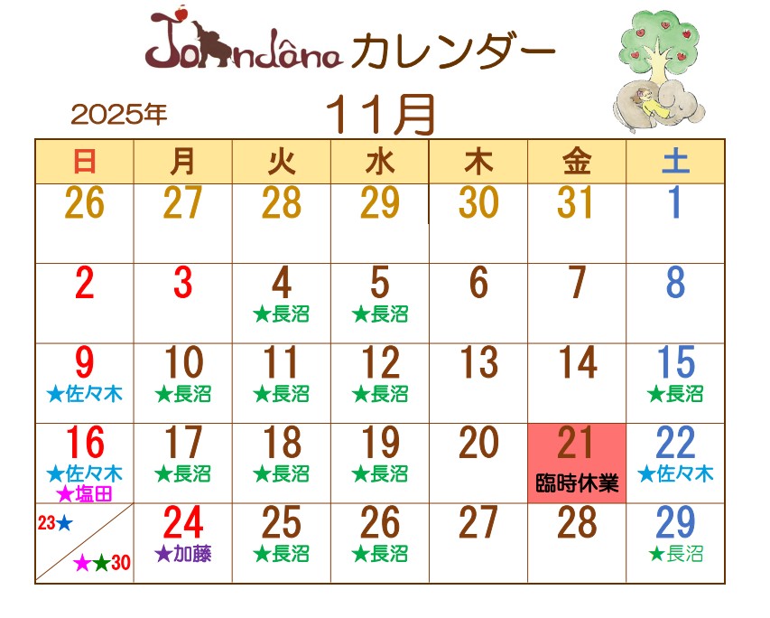 11月のスタッフ出勤日・営業スケジュールをお知らせいたします。