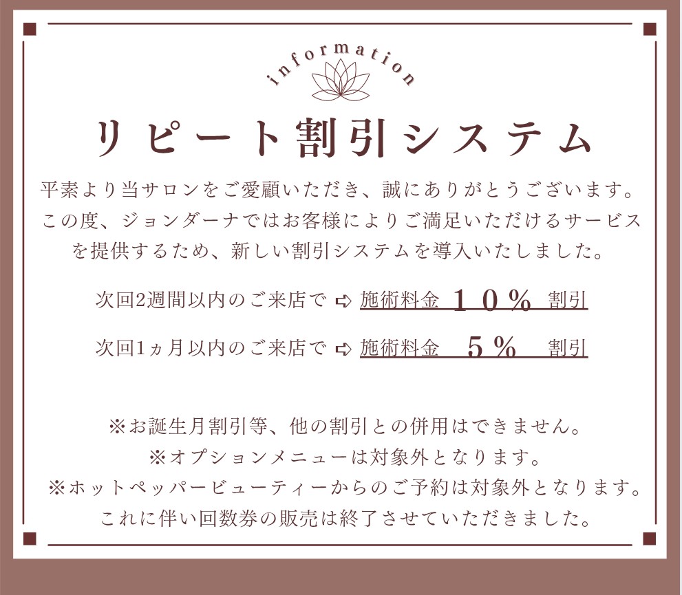 このたび当サロンでは、お客様によりご満足いただけるよう、