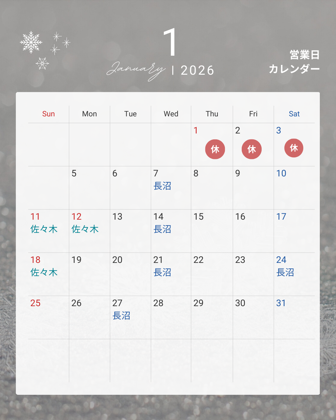 1月の営業日カレンダーをご案内いたします🗓️✨