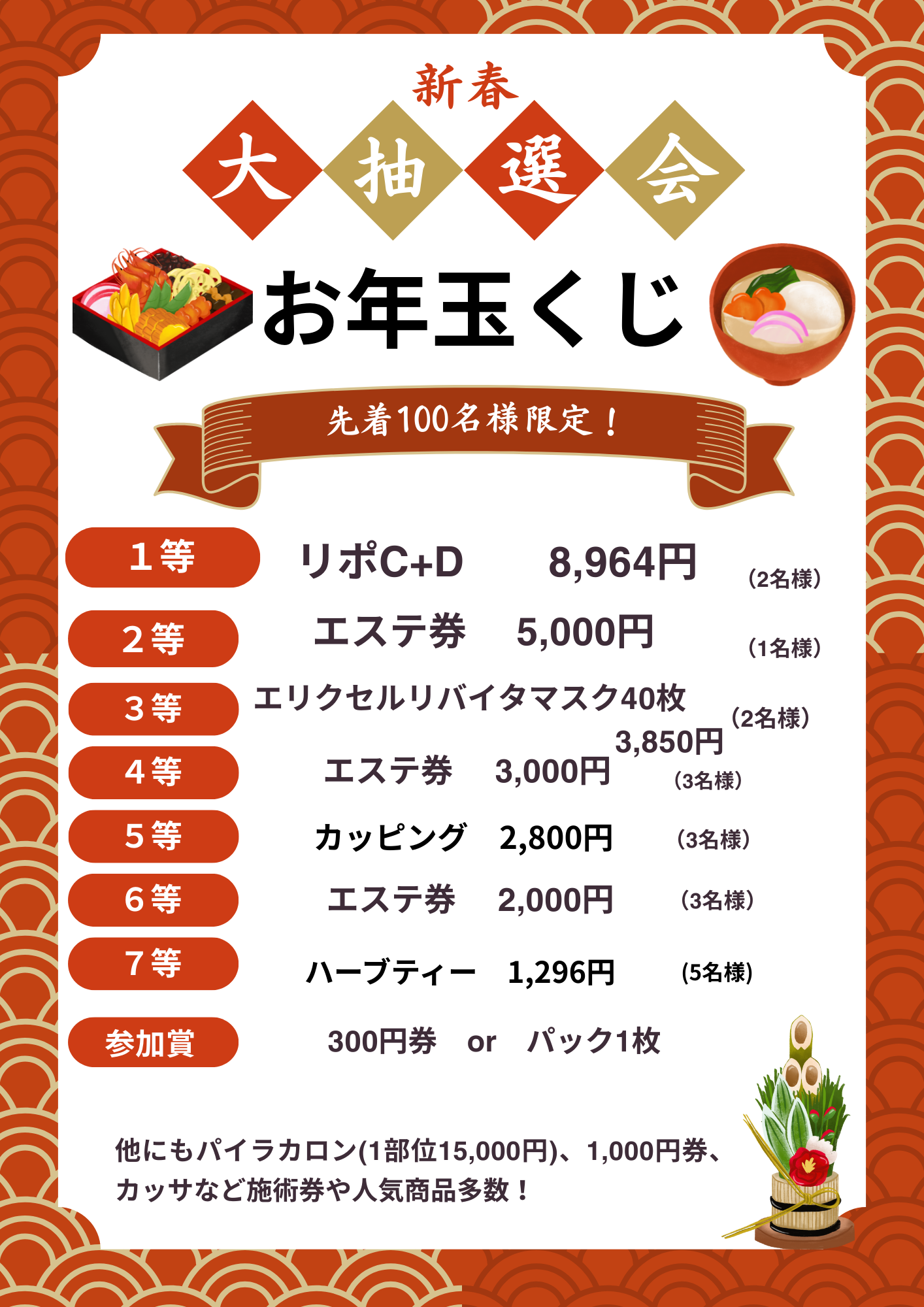 ご来店の方に、ハズレなしのお年玉くじをお引きいただけます✨