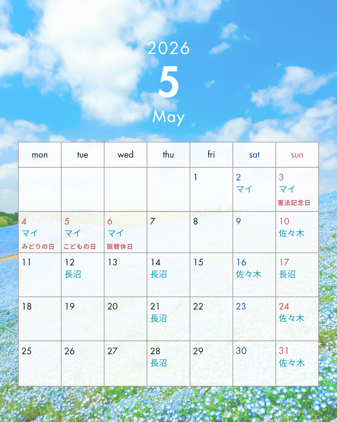 🌷5月のスケジュール🌷